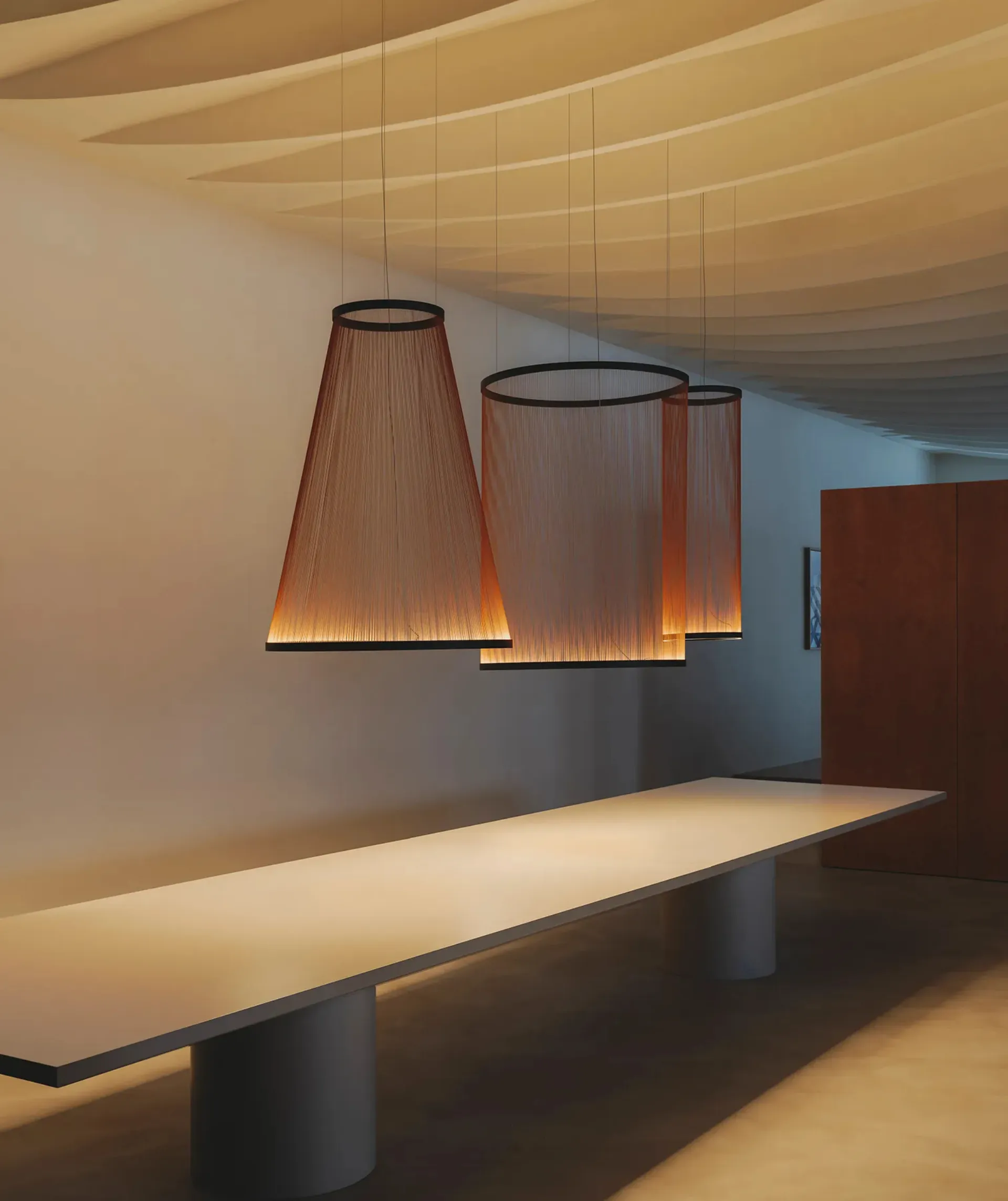 Questa soluzione fa al caso tuo se vuoi completare gli ambienti domestici rendendoli vivibili: le più belle proposte Vibia ti attendono in showroom. Da noi, con le proposte dei nostri designer di interni e le lampade per interni a sospensione, saprai come posizionare i punti luce e quali scegliere. Il mondo delle lampade per interni è utilizzata per fare luce diffusa in un ambiente o valorizzare un angolo di casa, un elemento nel dettaglio o un complemento. Lampada a sospensione Array di Vibia in tessuto: caratterizzerà con gusto ogni locale di cui disponi, esaltando un'ambientazione di grande valore estetico. In negozio proponiamo le migliori soluzioni che il marchio produce per chi sia intenzionato a illuminare al meglio la sua abitazione con funzionalità e stile.