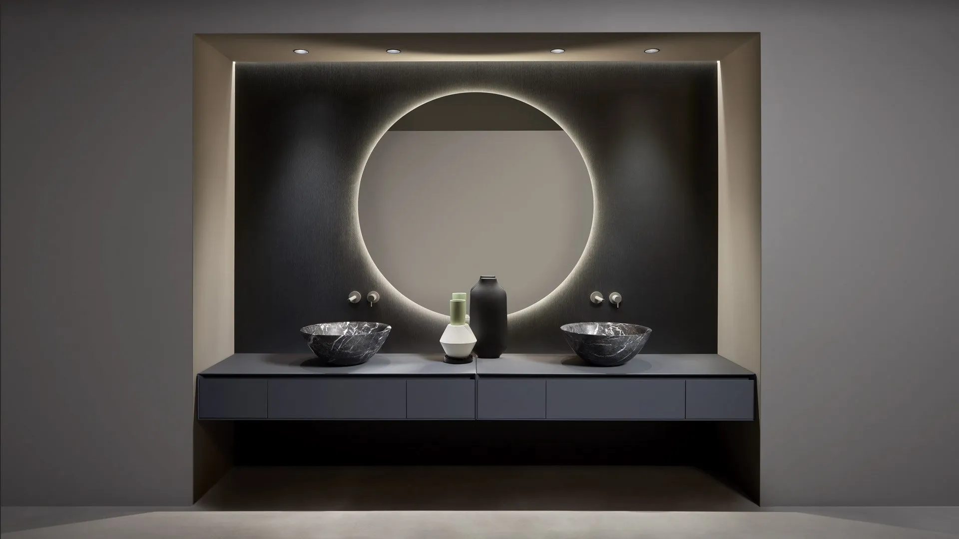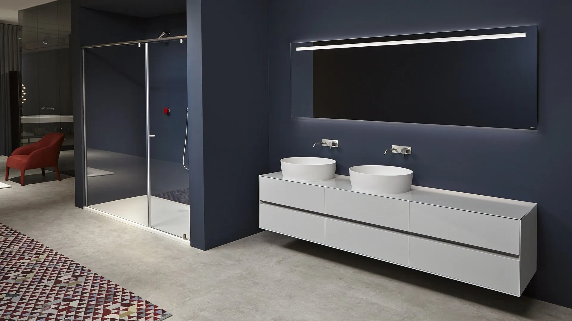 Con le proposte che presentiamo ti garantirai mobili ben fatti e alla moda anche per il bagno, che va arredato con attenzione, con praticità e design. Antoniolupi produce soluzioni per l’Arredo Bagno moderno con mobili bagno sospesi che abbinano linee ben studiate e grande ergonomia, come questo interno chiede. Esteticamente apprezzabile e utile in ogni stanza da bagno, un modello in laccato opaco moderno come quello in foto risolverà le tue problematiche abitative di ogni tipo. Il modello Mobile da Bagno Pantarei 03 di Antoniolupi in laccato opaco fa parte della vasta collezione di mobili per la sala da bagno del brand, sempre di alto valore estetico. Materie prime di qualità e una ricca palette cromatica assicurano una progettualità dettagliata e materiali durevoli resistenti a diversificate sostanze o composti. In showroom potrai visionare in prima persona le più belle composizioni del noto e rinomato marchio: ti aspettiamo per arredare insieme il tuo bagno.