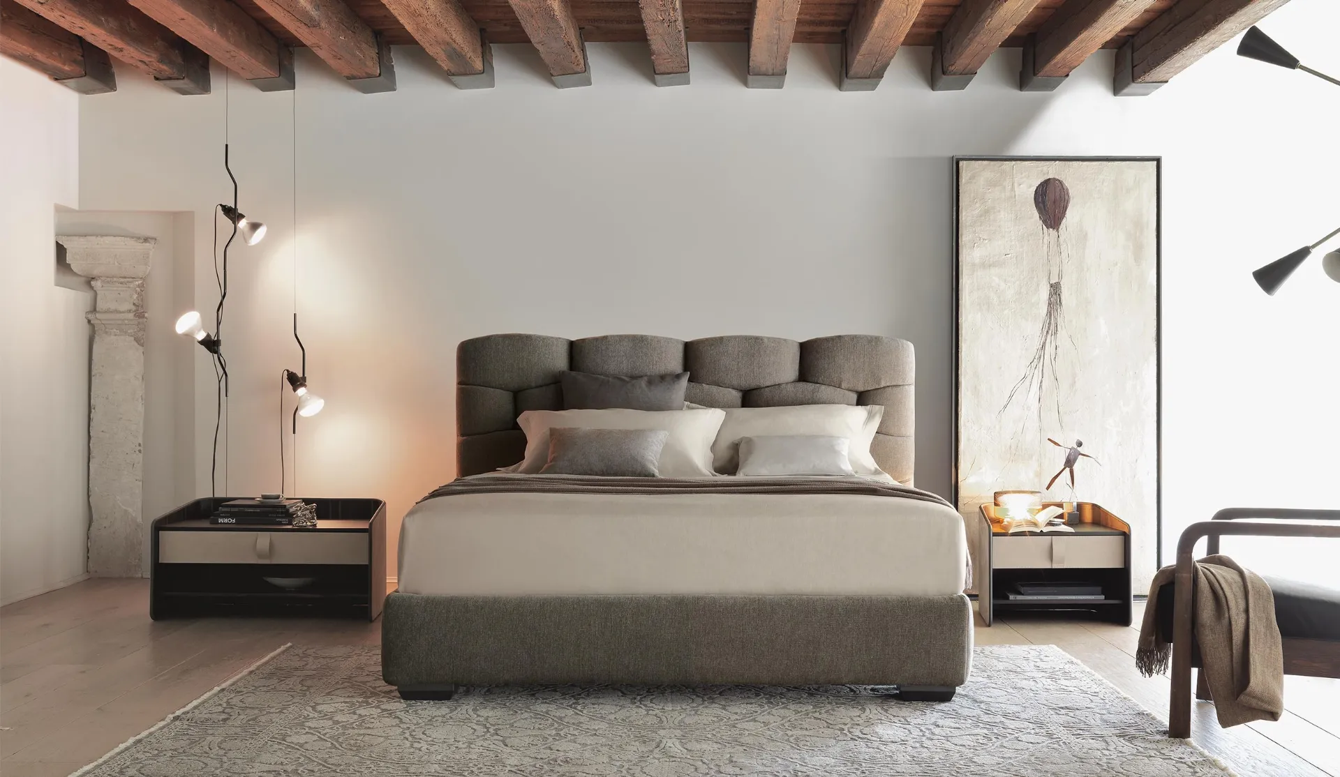 I Letti sono il centro di ogni zona notte, mobili fondamentali per garantire un sonno tranquillo e ristoratore e il giusto sostegno per la schiena. Letto in tessuto con testiera Majal di Flou: sarà l'ideale per spazi design, è una composizione pensata per garantire il relax totale ogni notte. Il rinomato marchio è lo specialista del buon sonno: una ricca gamma di modelli matrimoniali imbottiti, anche realizzati in tessuto, ti aspetta nel nostro punto vendita. Con i Letti matrimoniali in tessuto di Flou, tra cui il modello nell'immagine, avrai nella tua zona notte un arredo bello e accogliente. Con noi potrai realizzare la zona notte proprio come l'avevi sognata, bella e funzionale nonché completa di un'infinità di accessori design.