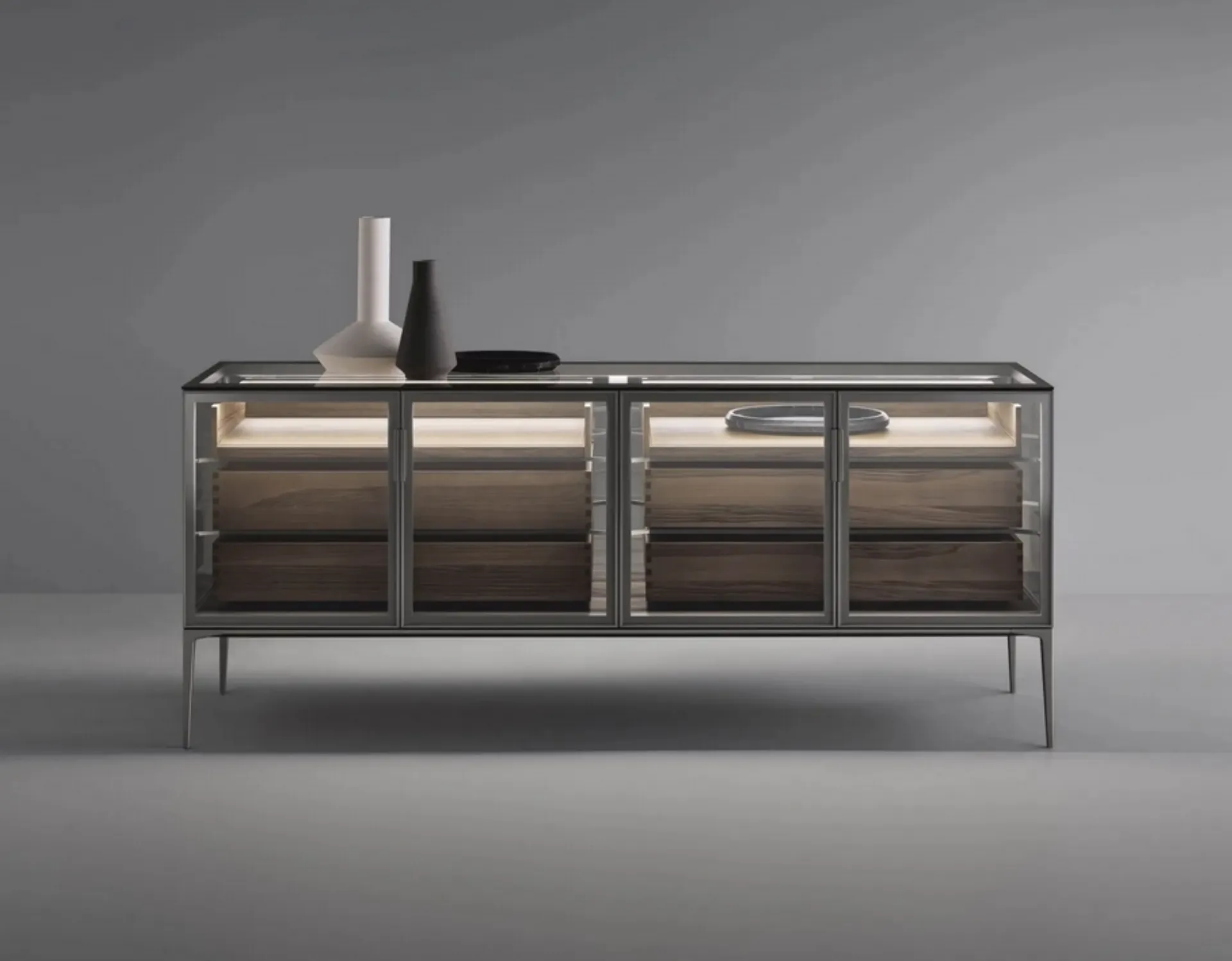 Ottimizza il tuo soggiorno secondo le tue problematiche abitative: scopri in negozio un ricco catalogo di mobili soggiorno, anche in vetro come il modello presente in foto. La Madia Alambra di Rimadesio qui visibile con finitura in vetro è la scelta ideale, poiché conferisce un tocco raffinato al living. Per gli appassionati nel campo dell'arredo questo modello di mobile soggiorno dalle linee moderne garatisce l'eccellenza del rinomato marchio: contattaci per info e preventivi. Se quello che stai cercando è una madia solida, gradevole e elegante per organizzare al meglio il tuo soggiorno, lasciati ispirare dalle più originali Madie moderne dei migliori brand di Arredamento Casa.