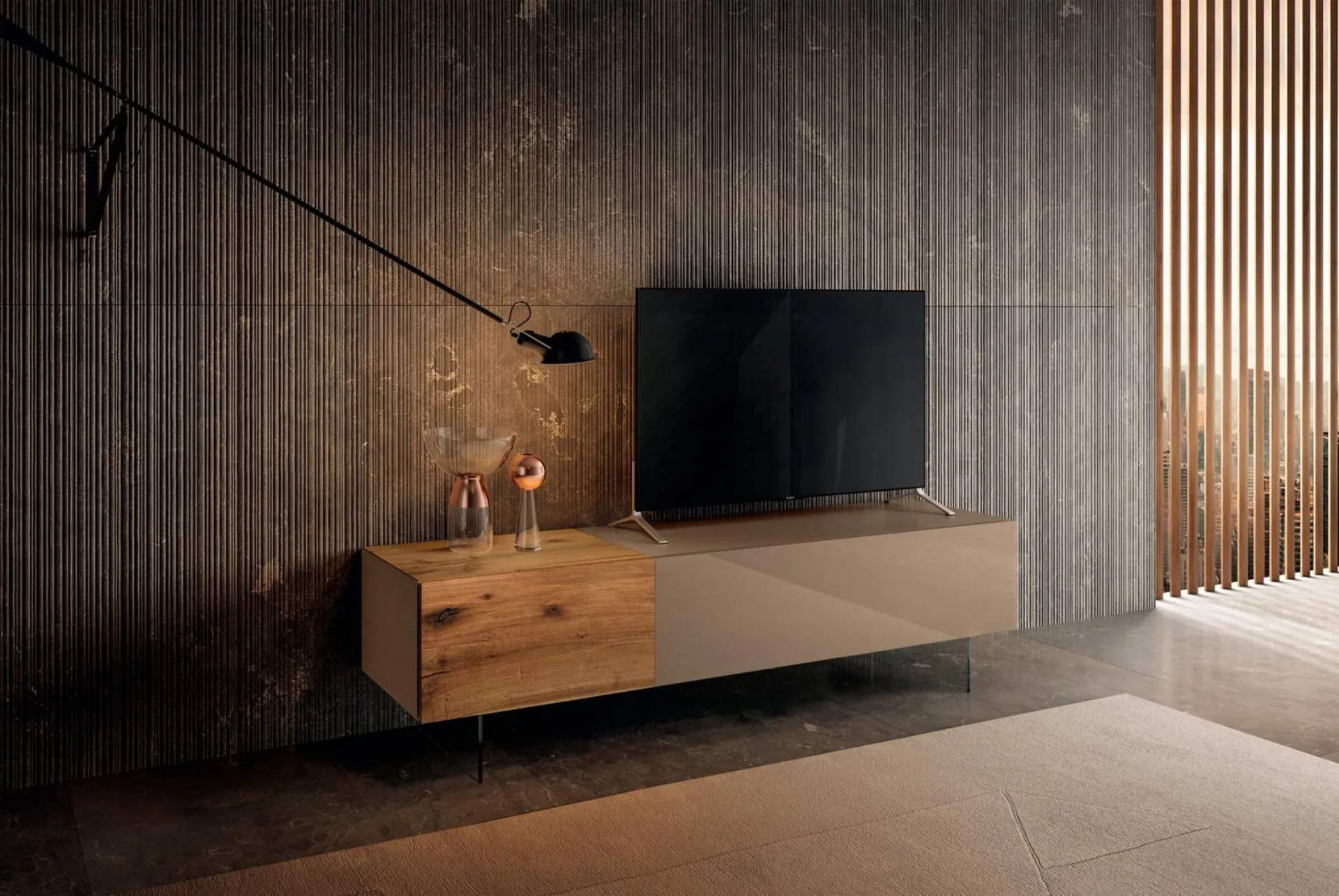 Poiché i Mobili Porta Tv moderni devono sfruttare al meglio lo spazio, sarà imprescindibile selezionare attentamente qual è la tipologia di sistema che fa al caso tuo. Una parte delle finalità alle quali i Mobili Porta Tv devono rispondere nel soggiorno sono tenere in vista la TV, gli altri apparecchi multimediali e la tua oggettistica. Dopo aver scelto la tipologia di supporto che vuoi acquistare, potrai scegliere a quale idea di stile rifarti: i modelli moderni di Lago ti aspettano in showroom. Nella nostra ricca collezione di arredi firmati dal rinomato marchio, scoprirai pure Mobili Porta Tv in vetro per impreziosire alla perfezione il tuo soggiorno. I Mobili Porta Tv moderni di Lago in vetro non servono solo a impreziosire i tuoi locali di casa, ma anche a sfruttare al meglio lo spazio.