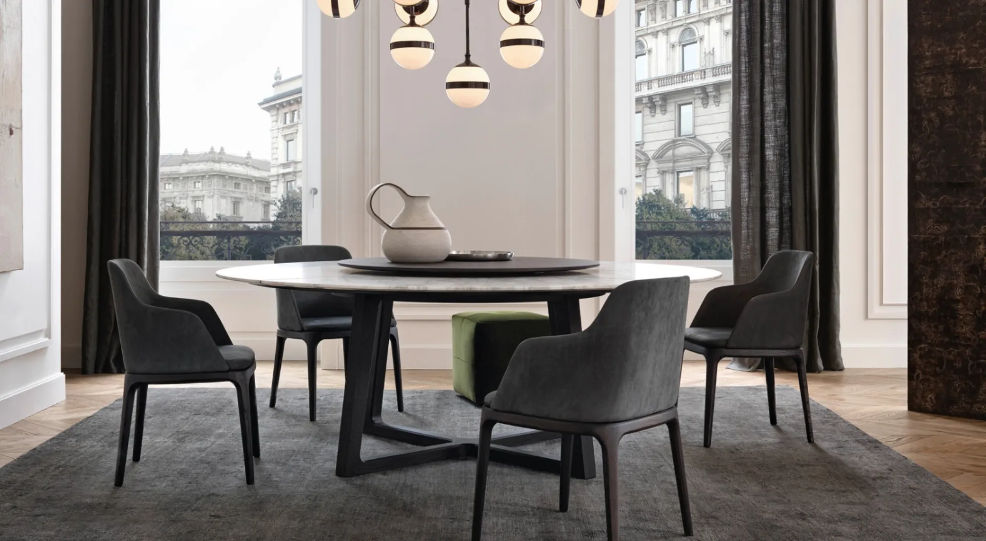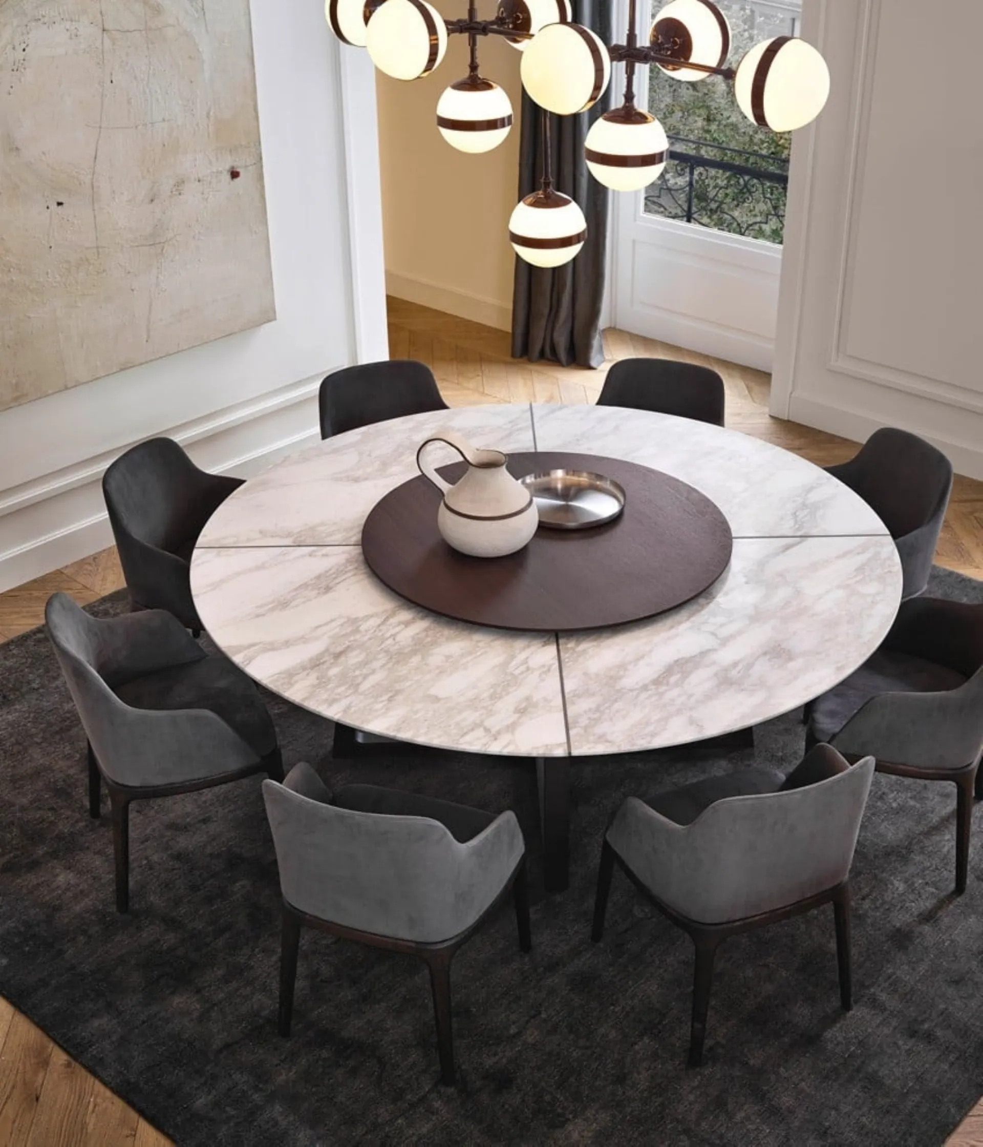 Tavolo rotondo Concorde di Poliform: realizzato in materiali di prima scelta è caratterizzato dalle forme decise del top e da un basamento elegante e sofisticato. Un modello come quello in foto, in abbinamento alle giuste sedie, saprà valorizzare il look delle stanze domestiche dedicate in assoluto alla convivialità. Ideali per dare vita a degli accostamenti unici con sedie e complementi moderni, i Tavoli fissi del brand sono soluzioni tra le più esclusive in commercio, ideali per il soggiorno e la zona cucina. Se vuoi un tavolo da pranzo di alto contenuto estetico, contattaci e ricevi informazioni e preventivi sul modello visibile in foto. Il rinomato marchio Poliform, leader nella produzione di mobili in marmo, ha scelto per la sua collezione una vasta scelta di materiali, linee e cromie.